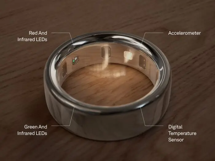 In zo’n kleine ring zitten tal van sensoren. Zo meet de PPG-sensor – dat zijn die LED-lichtjes binnenin de ring – verschillen in je bloedvolume, waardoor hartslag, zuurstofsaturatie en andere cardiovasculaire gegevens kunnen worden afgeleid. Zo’n ring meet eveneens de huidtemperatuur. Dat is handig om een nakende ziekte te zien aankomen en om de menstruatiecyclus op te volgen. Allerlei bewegingssensoren helpen dan weer om sportfuncties te benutten en om te checken of je wel voldoende hebt bewogen in de loop van de dag. De connectie met een smartphone is essentieel, dus kan ook Bluetooth niet ontbreken. Je merkt het al: een smart ring meet een berg aan gegevens. Dat moet de fabrikant dan op een veilige manier kunnen proppen in een minimalistisch voorwerp dat amper twee tot zes gram weegt. Zo weet je meteen waar de stevige kostprijs vandaan komt.