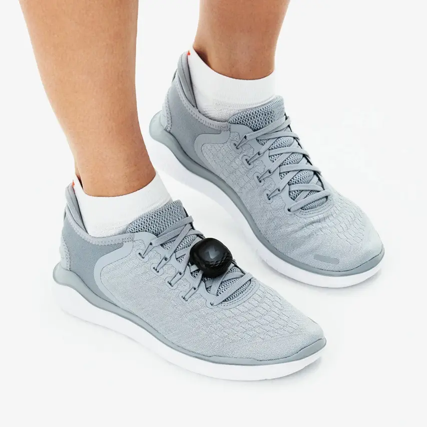 We bestelden de Zwift RunPod, want die stond net in promotie aan 21,99 euro. Dat is een sensor die jouw loopbeweging registreert en via bluetooth doorstuurt. Een knoopcelbatterij zit erbij. Die installeer je en daarna schuif je het plastic basisstukje onder je schoenveter en dan klik je de sensor erop vast. Eenvoudiger kan niet en nadien voel je dat lichte gadget ook niet meer tijdens het lopen.