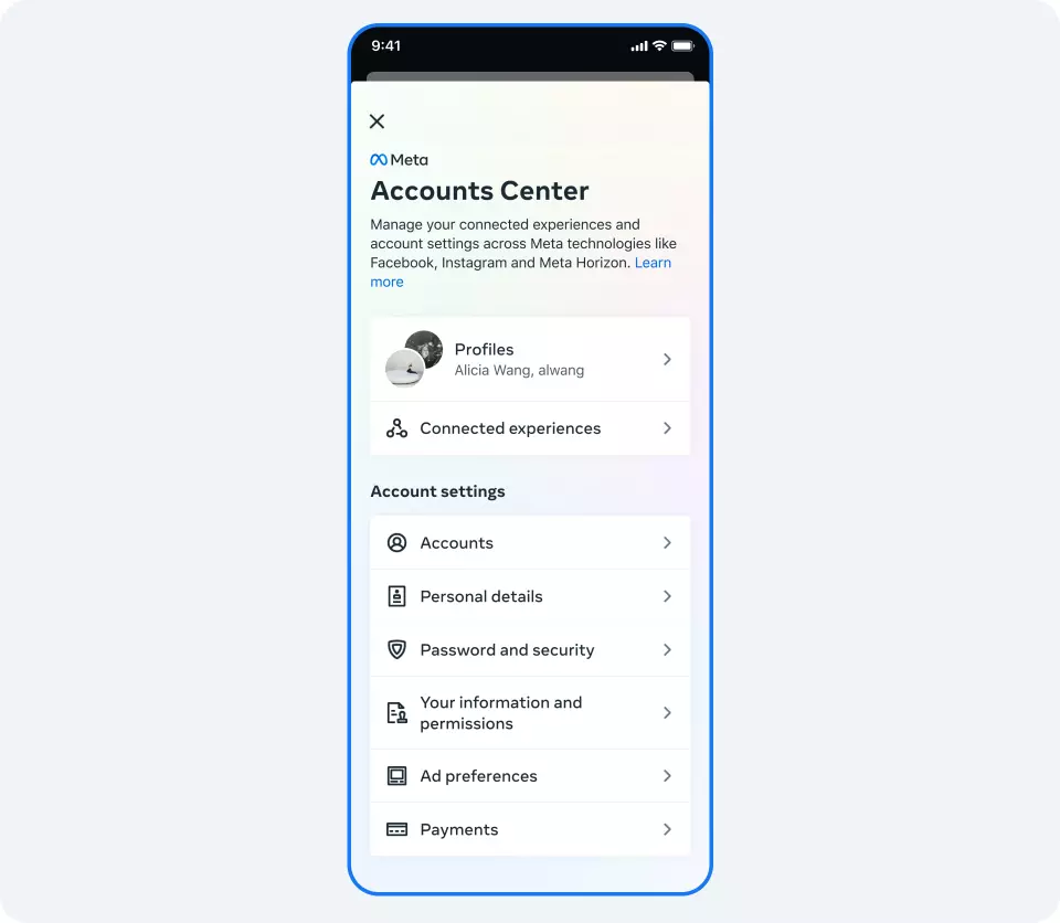 Meta lanceert Accounts Center om profielen te beheren