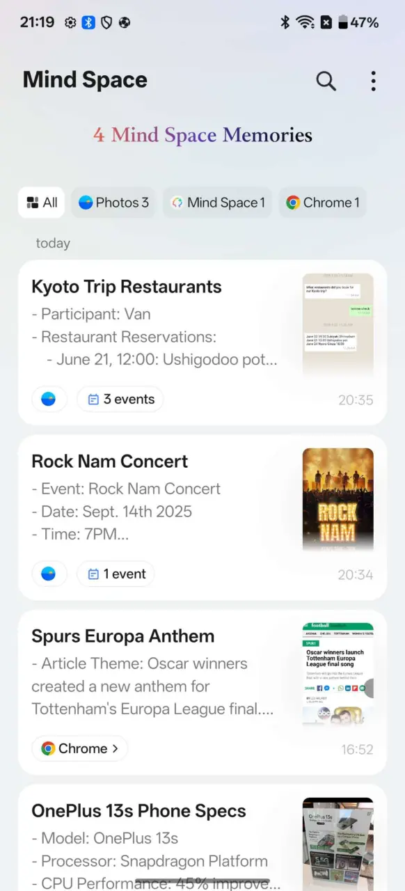 Plus Mind stelt gebruikers in staat om informatie op het scherm, zoals afspraken of adressen, op te slaan en te organiseren in een speciale ruimte genaamd ‘Mind Space’, die conceptueel erg lijkt op de Essential Space van Nothing.