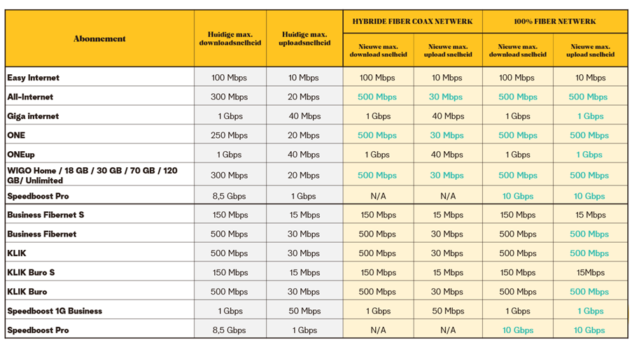 - Nieuwe snelheden: 500 Mbps download, 30 Mbps upload