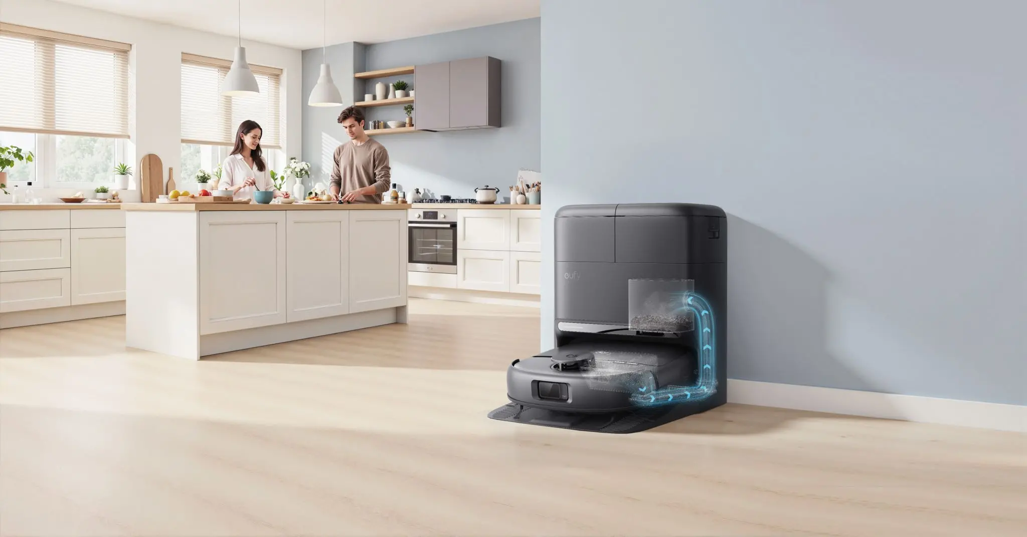 In de eufy-app kun je schoonmaakschema’s instellen en bepaalde functies toewijzen aan specifieke kamers via de plattegrond van je huis. Zo komt hij enkel op de plekken waar hij nodig is en kun je de taken zelfs ’s nachts laten uitvoeren.