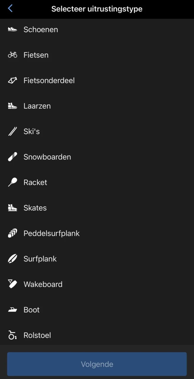 Garmin Connect biedt je sinds de jongste app-update meer mogelijkheden om je uitrusting gemakkelijker bij te houden. Je kan kiezen uit meer types van uitrusting, van schoenen en fietsen tot ski’ en rackets. Je kan de naam en foto’s van dat attribuut toevoegen, en kiezen uit bestaande merken en modellen. Het handigste is om Garmin automatisch te laten bijhouden hoeveel kilometers die spullen er al hebben opzitten. Daarvoor link je bijvoorbeeld je gewone loopschoenen aan je standaard loopactiviteiten en je trailschoenen aan de trailloopjes die je doet. Dan komen de juiste kilometers bij de juiste schoenen, als je tenminste altijd je Garmin-smartwatch gebruikt als je gaat lopen. Voorheen kon je trouwens maar één paar schoenen aan alle looptypes toewijzen. Dat is nu dus gedetailleerder, waardoor het voor meer sporters nuttig wordt.