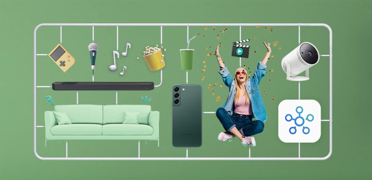 - ‘Home Party’ met de nieuwe The Freestyle portable projector, de Galaxy S22 of een Q-series soundbar