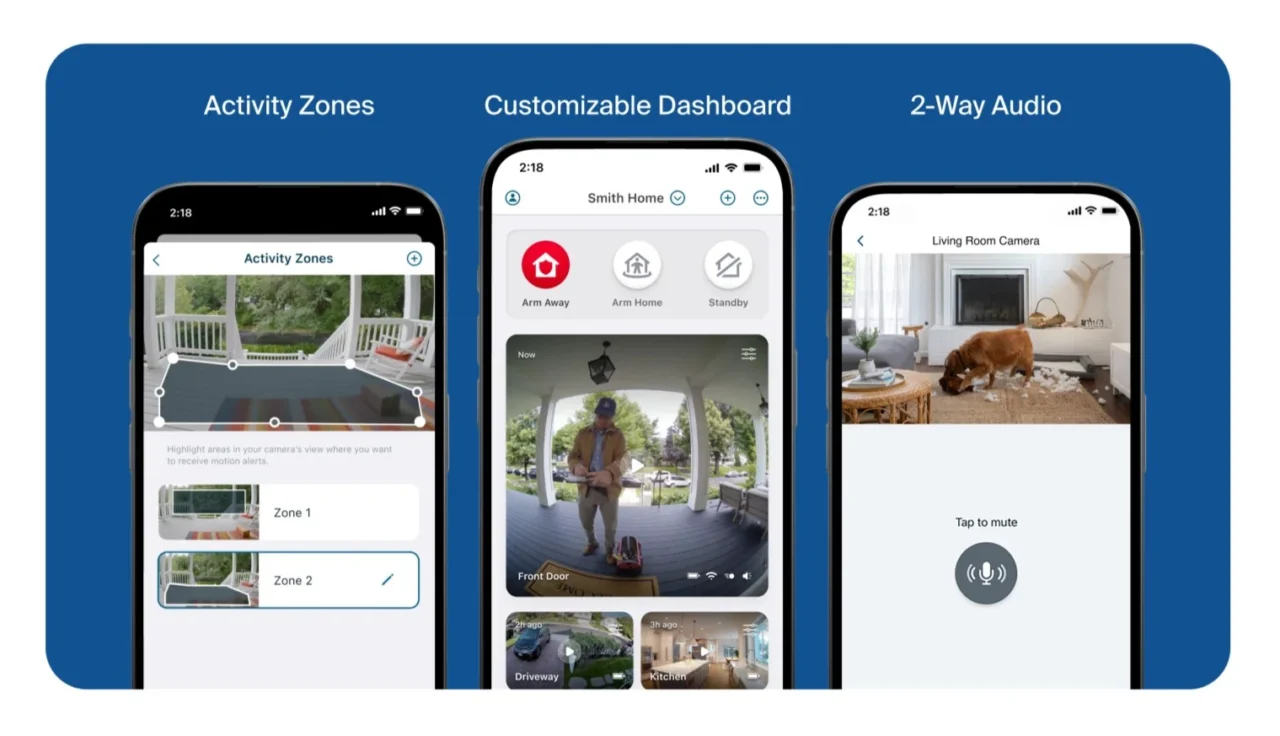De camerakwaliteit is zeker voldoende voor standaard toepassingen (aan je voordeur, oprit, tuinhuis), maar verwacht geen groothoekdekking. Voor brede tuinen of complexere buitenomgevingen moet je mogelijk meerdere camera’s inzetten. Hoewel 2K-video overdag prima werkt en nachtzicht redelijk is met spotlight of IR, is dit geen high-end bewakingscamera met ultrahoge resolutie of geavanceerde beeldverwerking. Verwacht geen superscherpe videobeelden zoals van een Pro- of Ultra-model. Maar voor alle duidelijkheid: de meeste huishoudens zullen perfect tevreden zijn met wat de Essential XL Security Camera biedt. Ook de ingebouwde sirene en tweerichtingsaudio (microfoon + speaker) zijn behouden. Je kan dus horen én zelf spreken, of een indringer afschrikken met licht en geluid zodra de camera beweging detecteert. De app-ervaring blijft ruim vergelijkbaar: je koppelt de camera via wifi, stelt bewegingszones in, en ontvangt meldingen met fotopreviews zodra er beweging is.