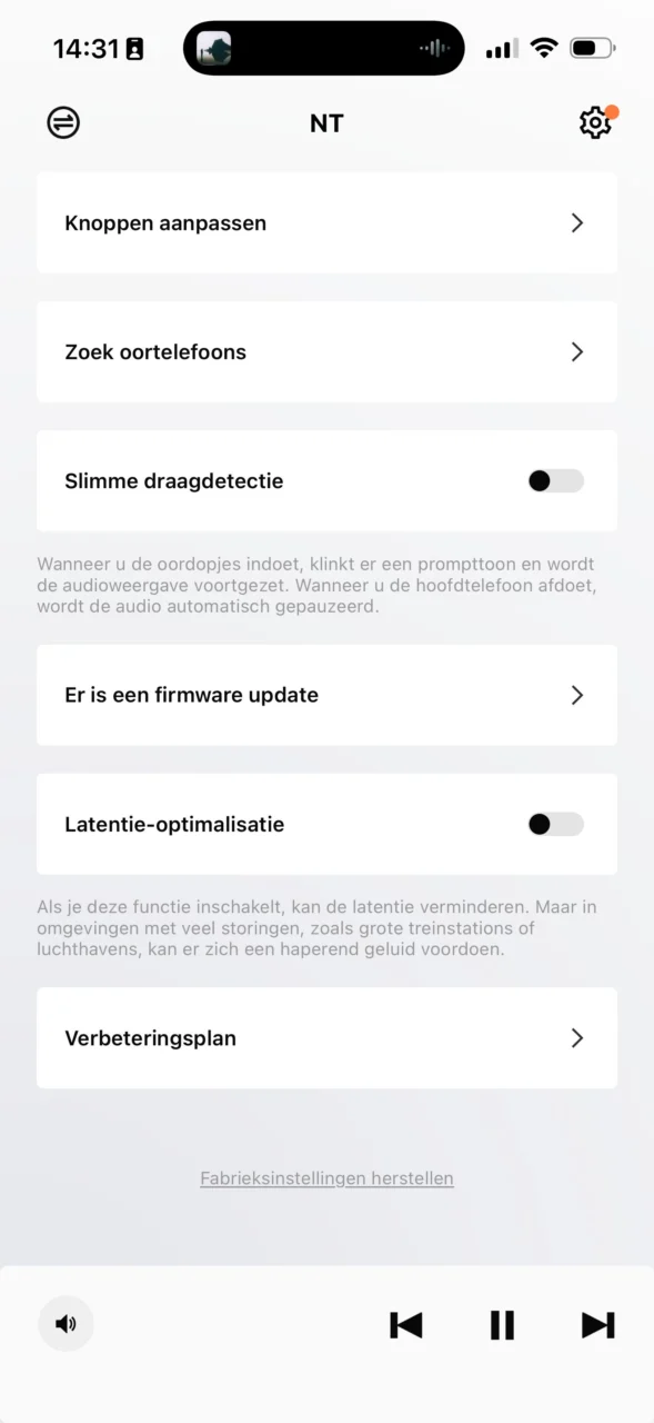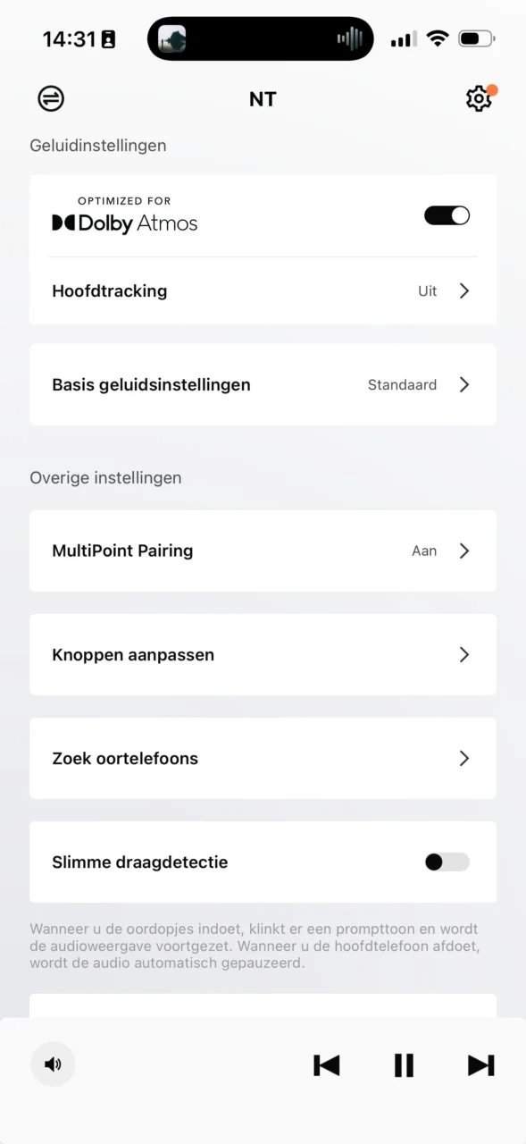 De app zelf is bovendien niet bijzonder uitgebreid. Wel kan je multipoint en Dolby Atmos activeren en software-updates installeren. Dat laatste liep bij ons geregeld mis, al is het moeilijk te zeggen of dat lag aan de pre-release-app of aan de testexemplaren. We gaan er in elk geval van uit dat dit opgelost is wanneer de oortjes dit voorjaar in de Belgische en Nederlandse winkels liggen.