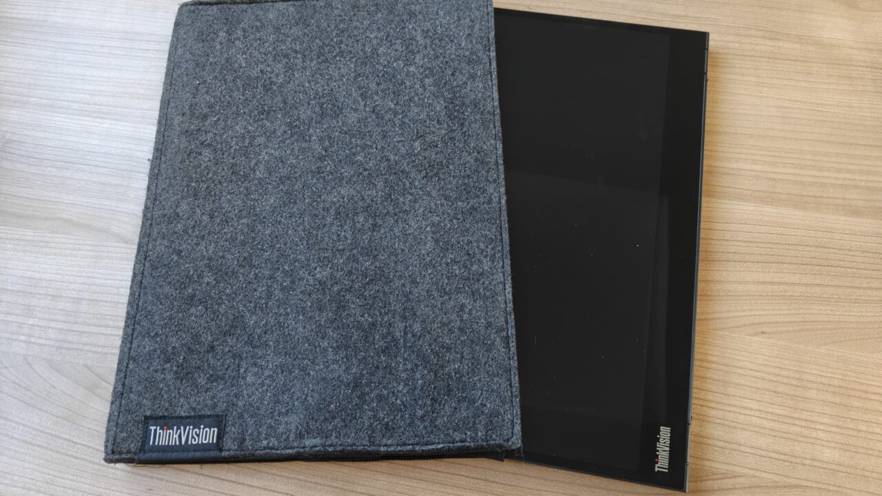 Wil je die ervaring echter meenemen op verplaatsing, dan wil je niet sleuren met een groot beeldscherm waarvoor je een stopcontact moet zoeken. Ziedaar het inzetbereik van de draagbare monitor. Net zoals je zou verwachten bij zo’n apparaat, is deze Lenovo licht en compact. Op onze keukenweegschaal laat hij 662 gram noteren en hij meet 31,5 cm breed, 23,5 cm hoog en amper 4,6 mm dik, als je de ingeklapte voet niet meerekent. Een brede rand is er niet, enkel onderaan wel.