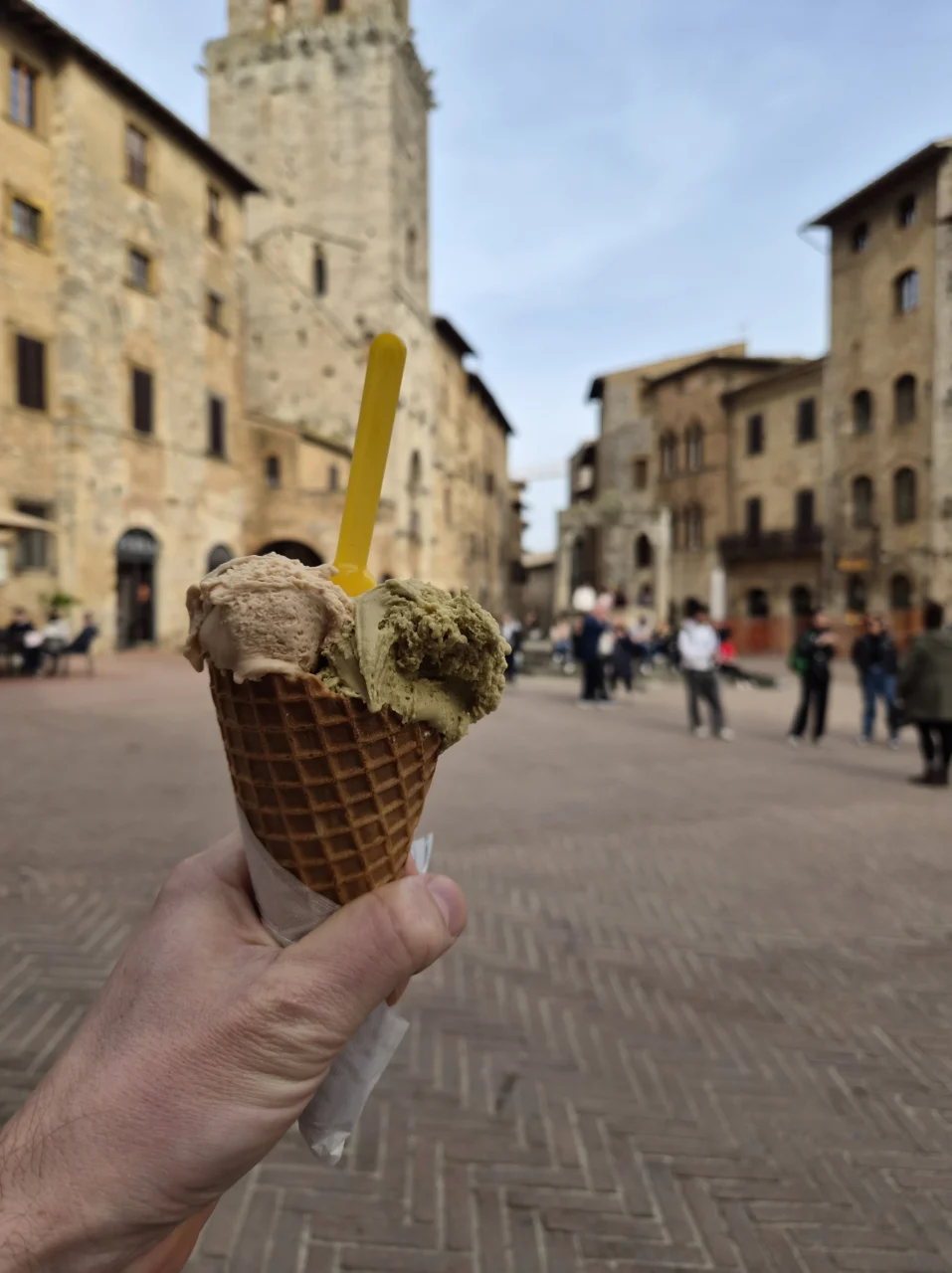 Wat de hoofdlens bijvoorbeeld wel goed doet, is het bokeh-effect creëren op de achtergrond. Neem onze foto van de gelato met het plein op de achtergrond. Daarbij komt duidelijk de structuur van het hoorntje en het ijs naar voren, met een vervaagde setting daarachter. Zo hoort het. Dat konden we ook bij andere situaties recreëren.