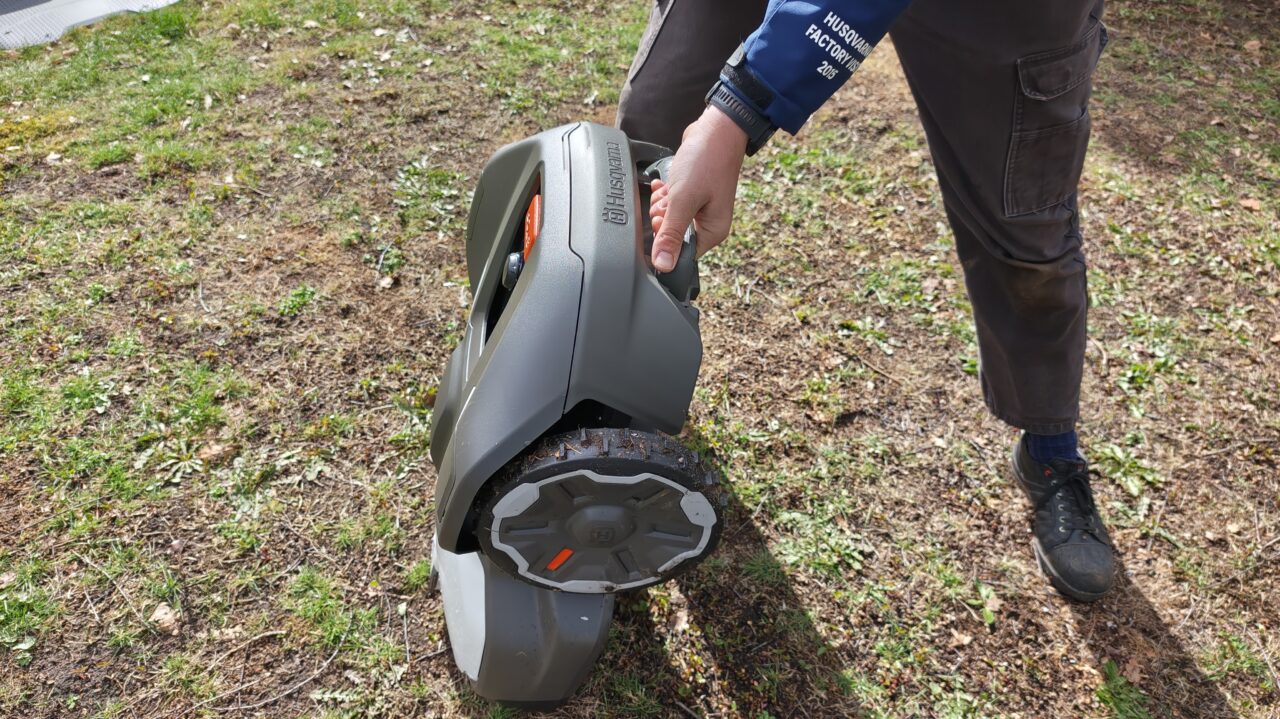 Husqvarna koos voor grote achterwielen. Mede daardoor heeft dit toestel met tweewielaandrijving toch voldoende grip om overal te geraken. Ook aan het zichzelf ingraven is hij daardoor minder gevoelig. Maar zelfs los daarvan lijkt deze robot beter in te spelen op zijn omgeving dan de meeste concurrenten. Nergens konden we diepe bandensporen vinden, terwijl dat bij andere merken vaste kost is.