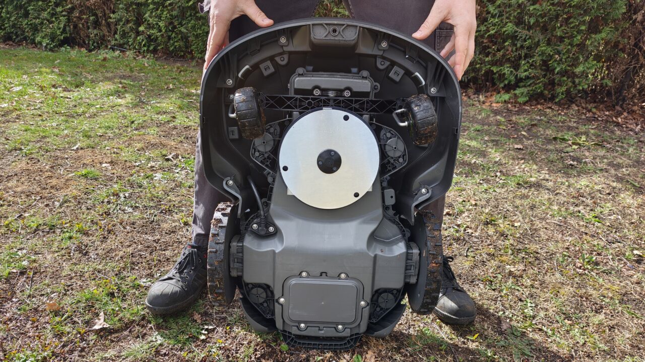 Leuk voor ons Belgen is dat je twee jaar extra garantie krijgt als je jaarlijks onderhoud bij je verdeler laat uitvoeren. Qua eigen onderhoud kan je de robot met een zachte waterstraal afspoelen en op vaste tijdstippen nieuwe mesjes installeren. De maaischijf draaien trouwens afwisselend in de ene en dan eens in de andere richting. Zo slijten de twee kanten van de messen gelijk en raken ze niet in onbalans tijdens het ronddraaien.