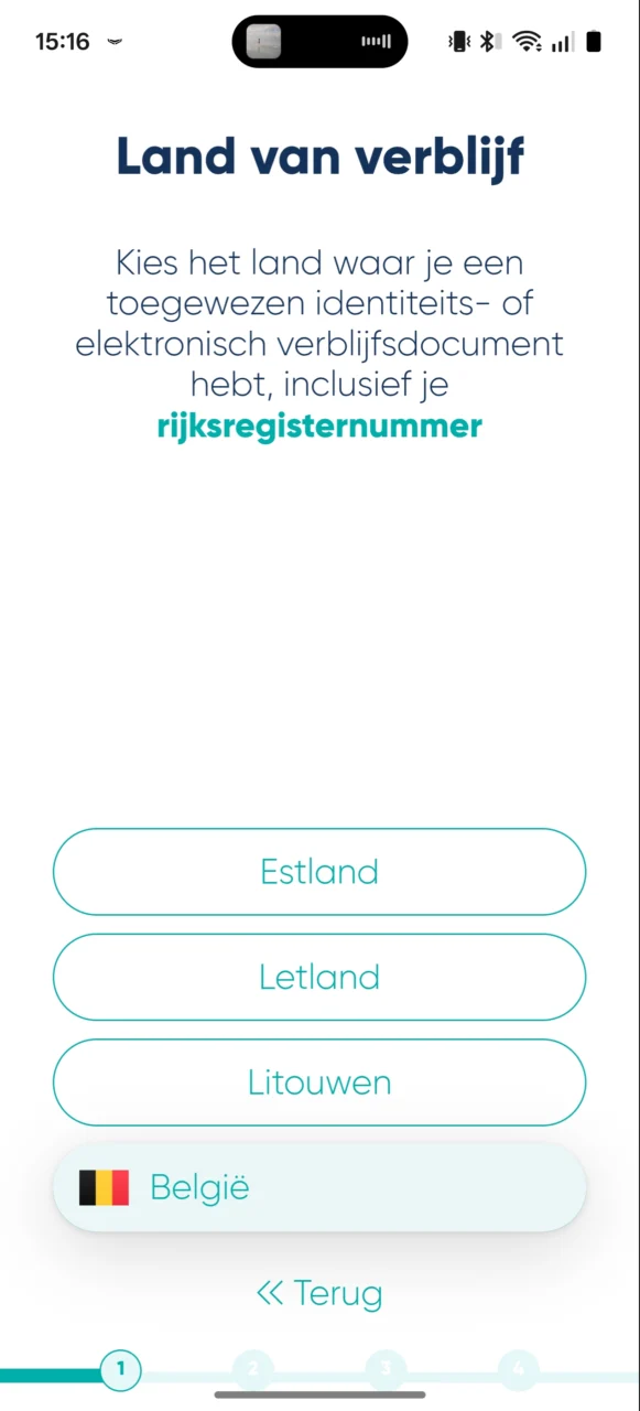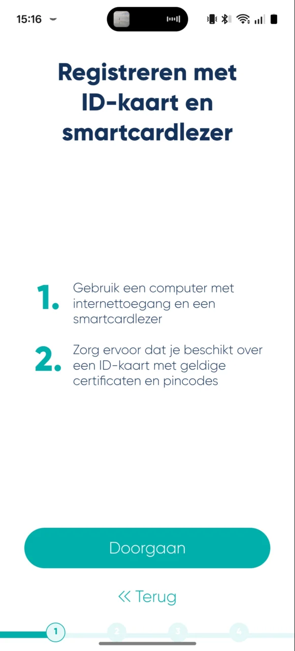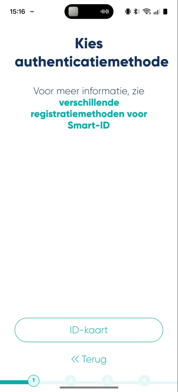 - Tik op ID-kaart als gewenste registratiemethode, aangezien dat de enige optie is.