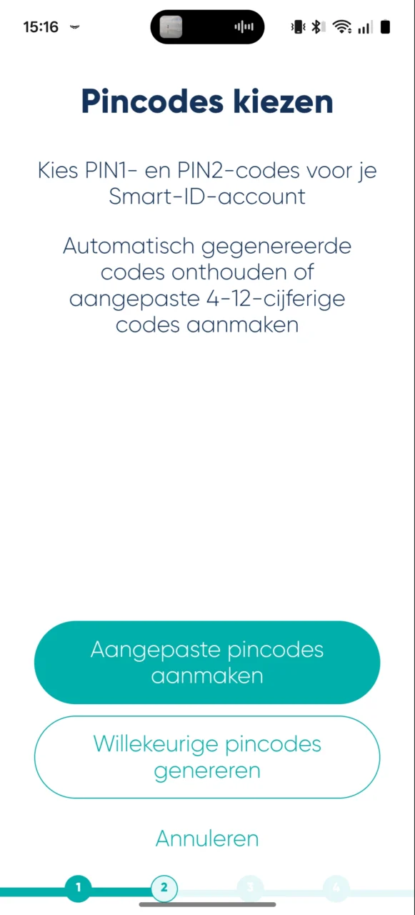 - Kies een eerste en een tweede pincode of laat die genereren.